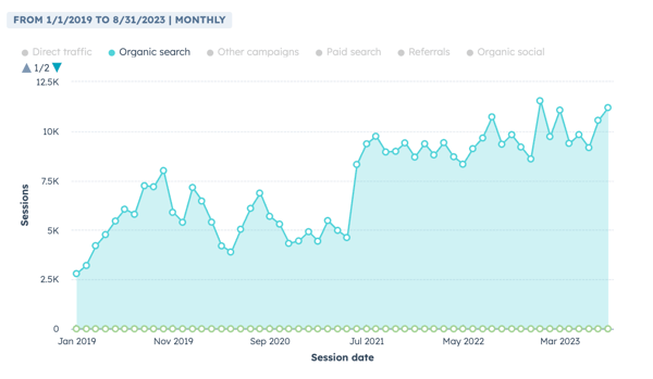 Amazing organic performance for the website and each topic cluster