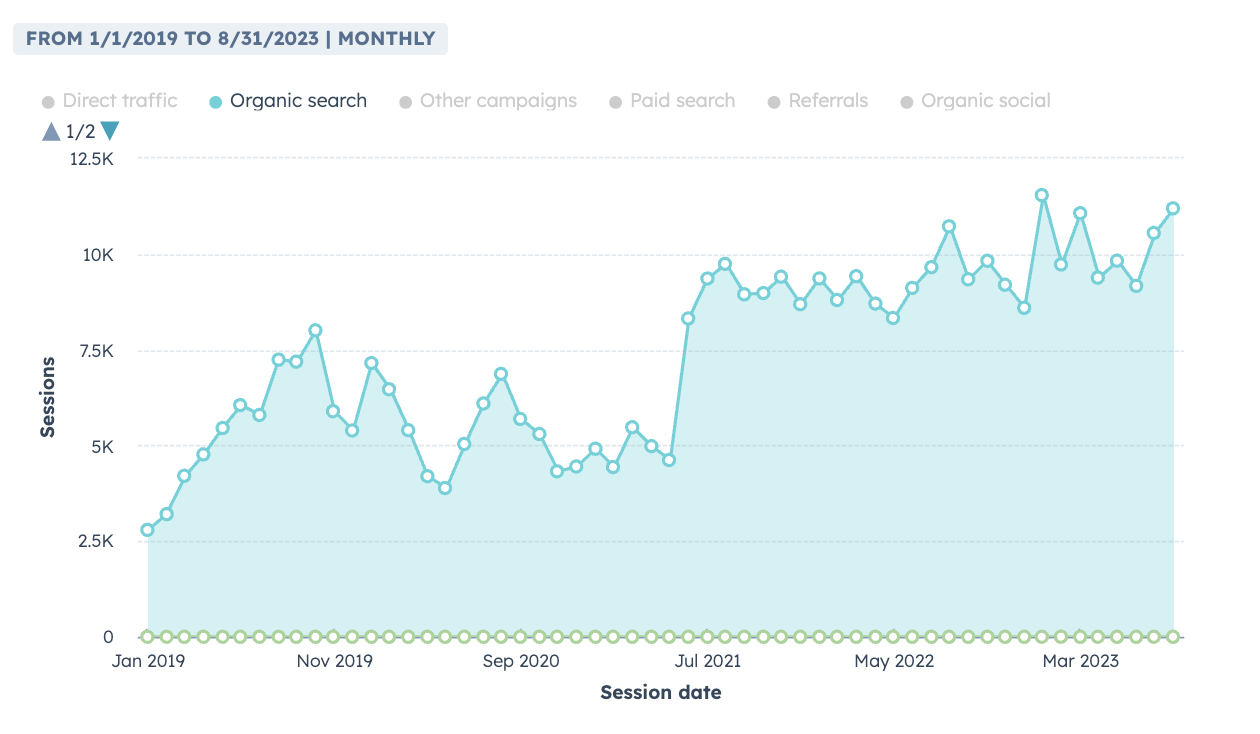 As the pieces came together and Google began indexing the fresh content, results began to build. Over the 3 year period the results of the pillar & content cluster strategy were undeniable. Consistent traffic growth with increased conversions has continually fed T&W with increased visibility and fresh leads to feed its mission.