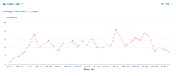 - Monthly form submissions grew from under 10 to over 40, averaging out to 26