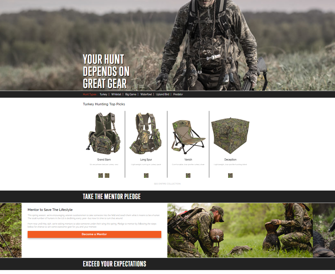 - User-generated content. With social proof being so important in today’s digital marketplace, ALPS wanted to make sure everyday hunters had a chance to learn about the experiences of their peers. Initially, this idea took shape in the Greatest Hunting Stories Ever Told concept — essentially a call to individuals in the hunting community to submit their best hunting stories. After submitting their story via a simple landing page, our teams would review the content and publish it to the Inside the Culture blog. Here’s an example of such a story.
