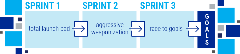 We like to plan three critical phases of the first year through detailed planning. Each phase (or "Sprint") has a focused theme, and is customized with a different blend of strategies and tactics meant to provide an escalated pace of results. One key is that subsequent sprints are planned as the Growth Machine comes together, not before. It's so important to allow pieces to come together, data to begin coming in, and strategies to mature. Here's what the first year of a Growth Machine strategy should look like:
