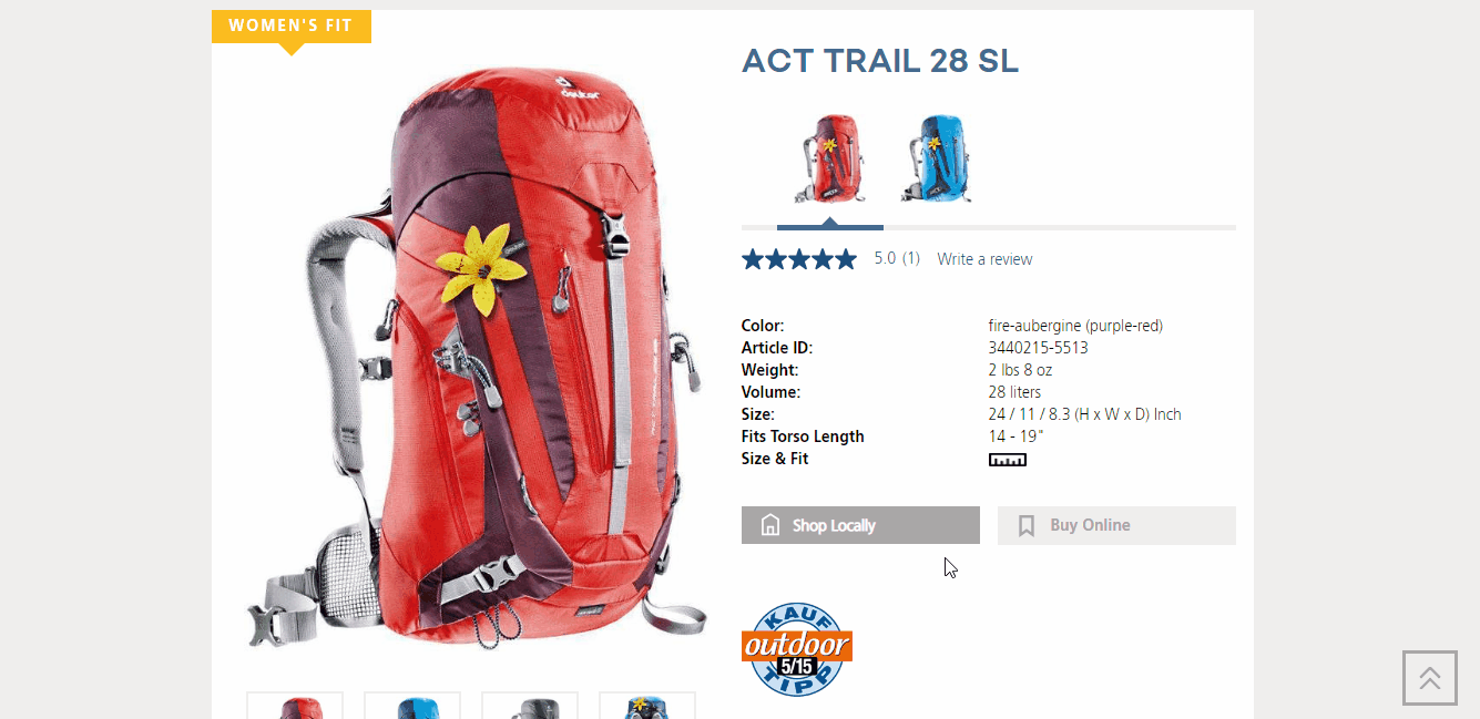 - Bazaarvoice - review software built onto every page for review management and product reputation growth across all stores. Since the products are consistent across the Deuter family, we kept the product reputation management the same as the German site.