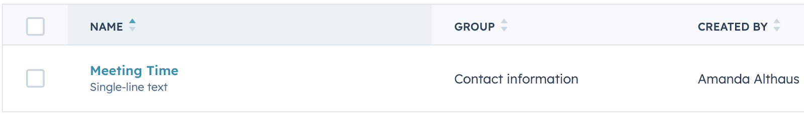 Create a custom contact property to store the meeting time. Something like ‘Meeting Time' will work. It should be a single-line text field.