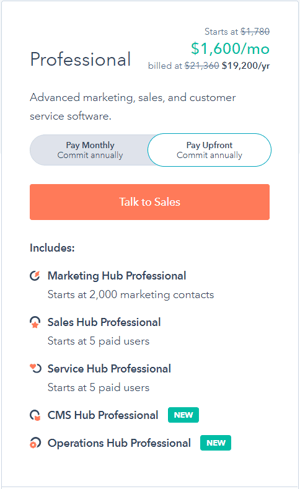 - You can mix and match your HUBS and tiers; Marketing Pro, CMS Enterprise, Sales Starter, etc.