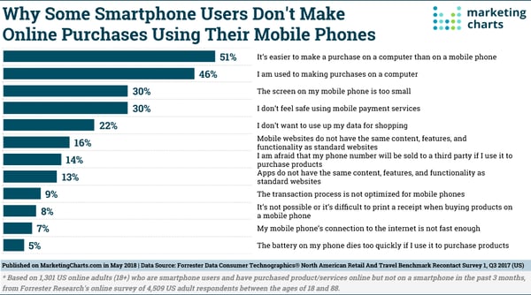 Website configuration is crucial. A recent report from Forrester Research indicates some of the reasons why people don't shop more on mobile. The majority of the reasons are fundamentally, website configuration challenges.