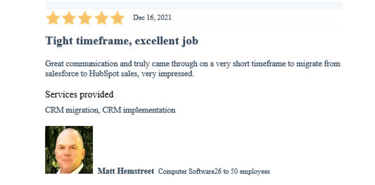 - Step 2: HubSpot Software Training: We held two calls to train Matt and his Admin to operate inside HubSpot CRM and how all the Sales Enterprise tools worked. This training element fulfilled the requirements by HubSpot to allow for waiving their onboarding consulting fees.