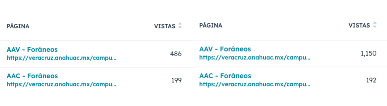 Con esta nueva estrategia, identificamos las páginas con contenido similar, pero con algunas variaciones por campus: