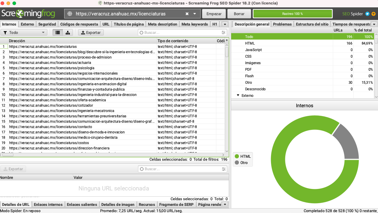 - Analizando estas páginas llegamos a la conclusión que solo “Estudia en Veracruz” e “Intercambio Académico” contaban con información relevante y palabras claves indispensables, mientras que el resto de las páginas fueron unificadas y se hicieron las redirecciones correspondientes.