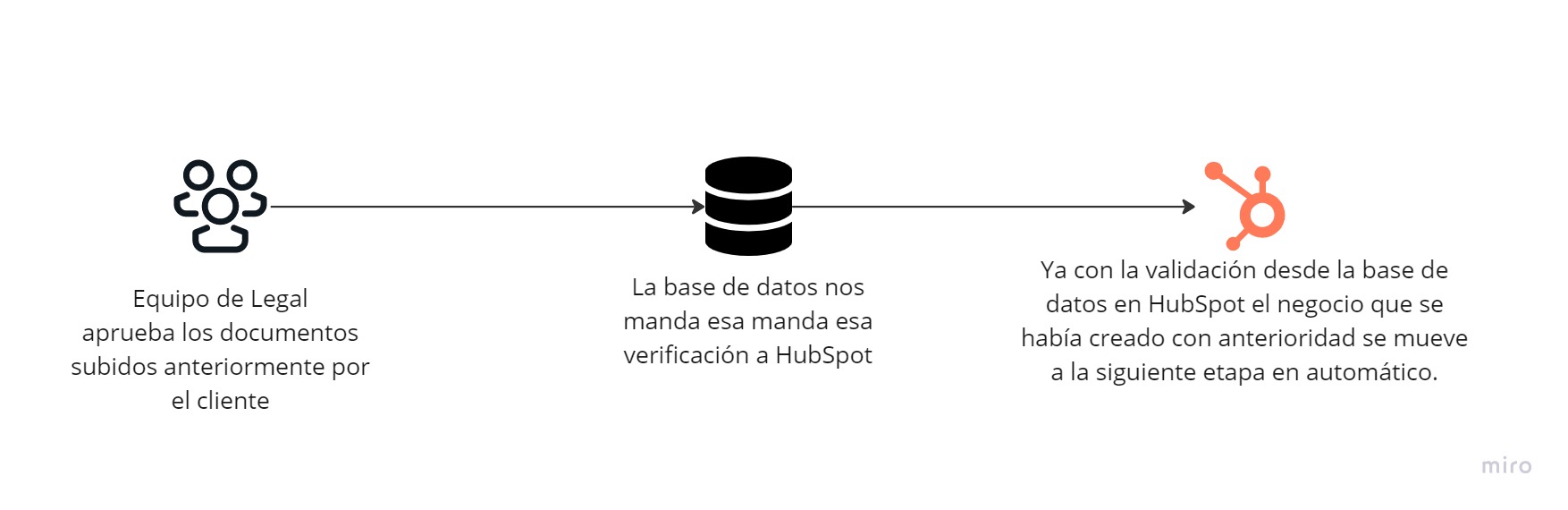 Anteriormente todo este proceso de manera manual, el equipo legal confirmaba tanto en la base de datos como al equipo de ventas cuando ya estaban validados los datos de las empresas, pero con esta automatización nos evitamos problemas de comunicación y tiempos, ya que la verificación solamente se hacía por medio de Slack y ocurría que a veces la validación se perdía y tenían que preguntar a legal si un lead ya había sido validado o no.
