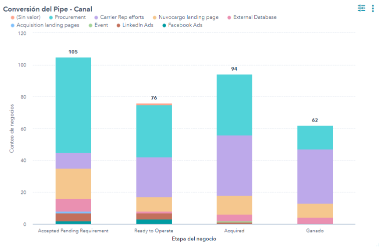 Medir que tipo de interacción está permitiendo convertir más negocios por cada etapa y de esta manera saber en qué canal nos trae mejor calidad en los leads y trabajar en mejorar los procesos que tenemos para los otros canales de adquisición.