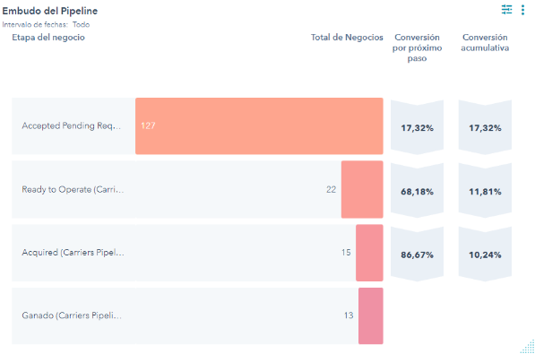 Tenemos un Embudo para saber el porcentaje que convertimos entre cada etapa.