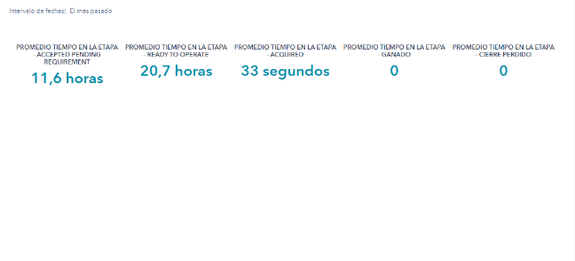Tenemos un promedio de cuanto se tarda un negocio para el cambio entre cada etapa del Pipeline, se notó una gran mejora en tiempos debido a las automatizaciones y en etapas donde anteriormente tardaban de una semana, a semana y media desde que un negocio entraba hasta que se cerraba, ahora lo máximo que llega a tardar en cerrar un negocio es de media semana y todo de manera automatizada.
