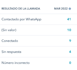 Se empezaron a utilizar valores para distinguir llamadas. Esta característica ayuda al equipo a catalogar cada una de las llamadas realizadas bajo ciertos resultados, llevando así un mejor registro de la calificación de prospectos y avance en las conversaciones con los mismos.