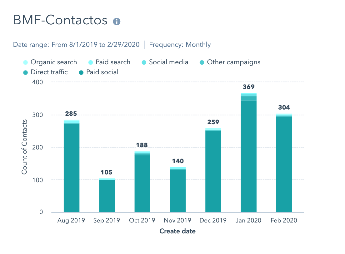 Durante los últimos 7 meses, las campañas PPC son el origen del +90% de los contactos generados por mes.