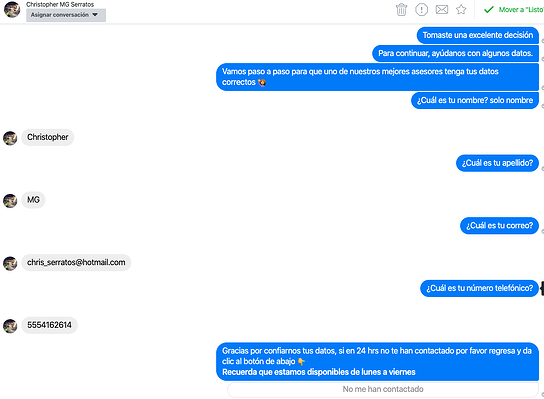 Se hizo también una integración entre ManyChat y HubSpot para que el registro dentro de la base de contactos fuera directa y al mismo tiempo muy intuitiva.