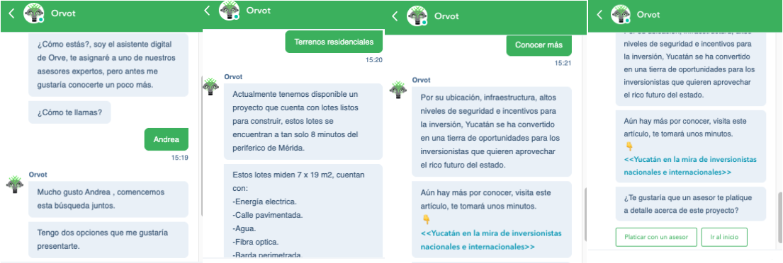 Se aplicó una estrategia de Marketing Conversacional basada en chatbots, que hasta ahora no solo atiende a los usuarios en tiempo real de manera personalizada y dinámica, si no que logra que el mismo usuario se califique él mismo antes de ser atendido por un vendedor.
