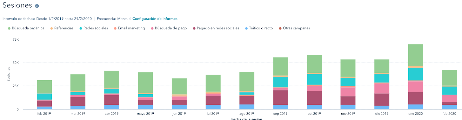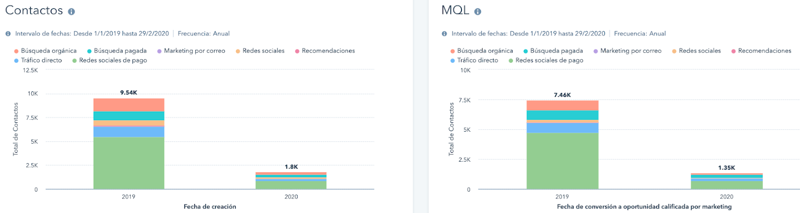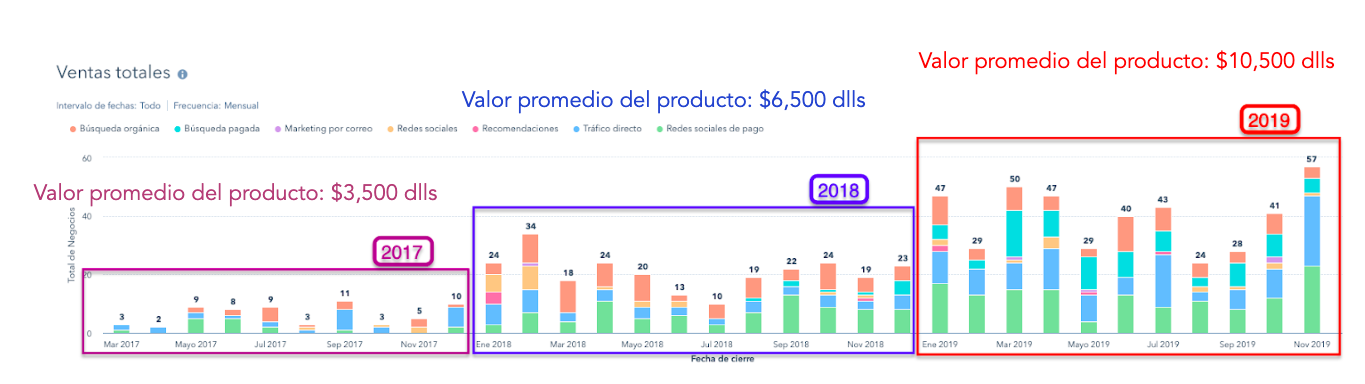El primer año de la cuenta únicamente se contaba con dos Hubs: Marketing Pro y Sales Pro y al día de hoy utiliza incluso Service.