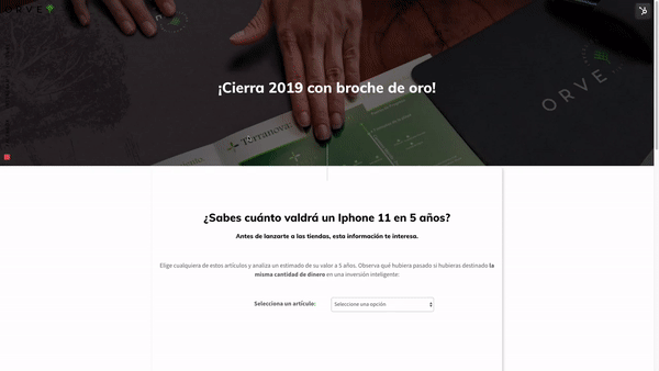 De igual manera se creó una Calculadora Comparativa llamada “Comprar o Invertir” en donde se le presentó a los leads cuánto dinero se pierde al comprar un artículo electrónico y lo que esa cantidad representaría en inversión en proyectos de Grupo Orve, contrastando los valores que tienen estos con el paso de los años.