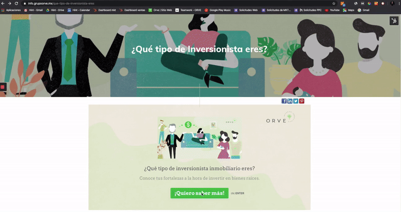 Si el resultado era, por ejemplo, “Inversionista Experimentado” se le enviaba a una Landing Page junto con recomendaciones de inversión en productos tipo premium, es decir, productos de Grupo Orve que se encontrarían en su rango de alcance y acordes a su “perfil de inversionista”.