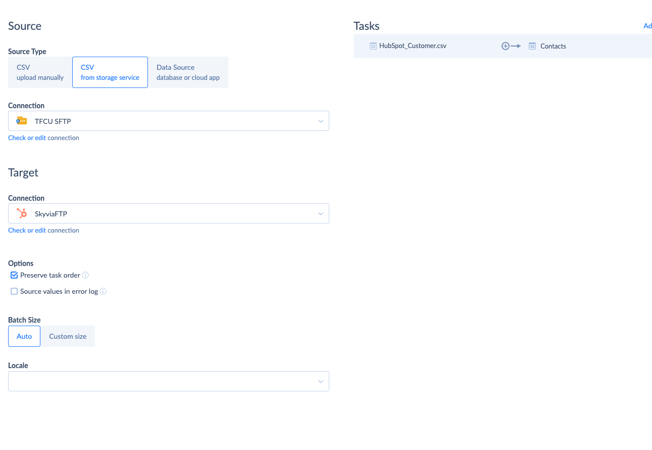 The solution we landed on was an adapted process leveraging SFTP and Skyvia. The FCU technical team worked hand-in-hand with our technical team to establish a connection between the SFTP server and Skyvia. Configured for two-way operation to perform daily syncs: