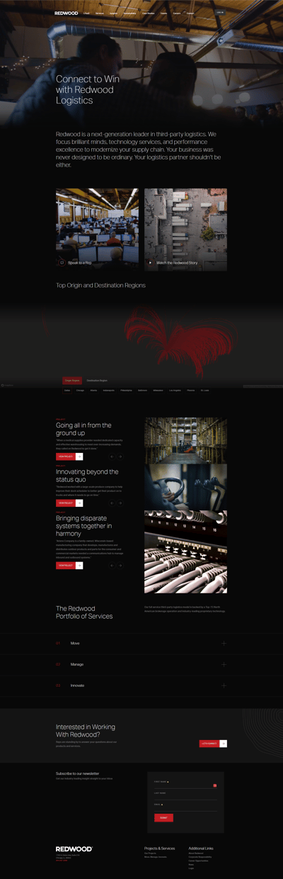 By leading with a tech forward approach, Redwood was able to provide solutions to companies with a disparate tech stack and siloed information. By serving clients through advanced technical integrations and infrastructure, they were able to set themselves apart from the crowd. But their website needed to showcase the same industry leading, tech forward approach they’ve come to be known for.