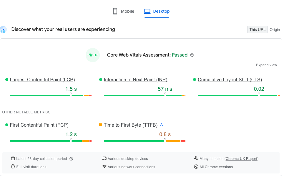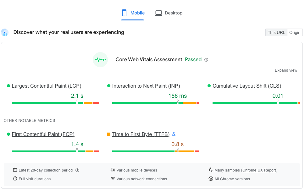 Ensuring the site performed well both on desktop and mobile was critical. Although the mobile usage was significantly less than desktop, knowing mobile experience was a ranking factor, we wanted to ensure optimal performance across all devices
