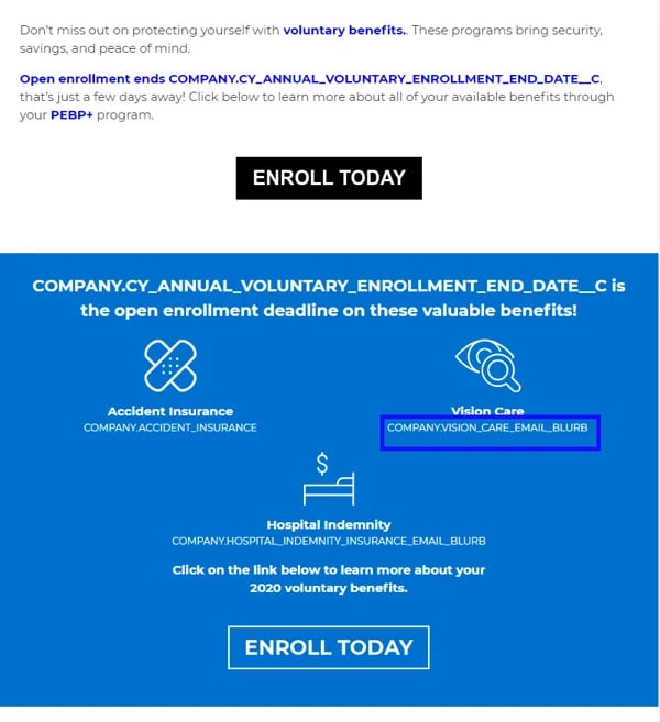 With our dynamic content generator via integration, we were able to streamline processes, increase visibility, and reduce the average open enrollment campaign build by 50%.