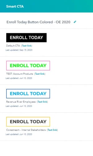 We were then able to utilize HubSpot’s smart content functionality to take other pieces of information from Salesforce, like the client’s enrollment URL, and automate the CTA link that is shown based on a client’s company list.