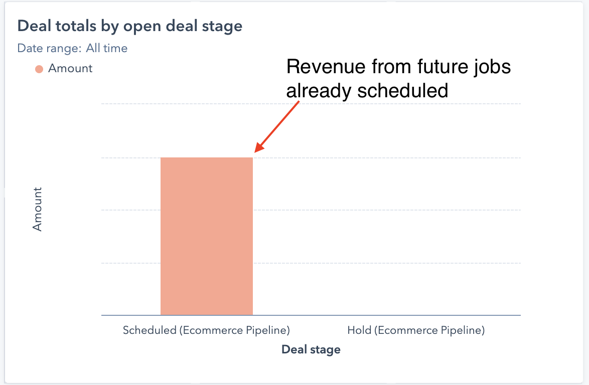 The “Job” status equated that to “Deal” stages in HubSpot, where we reported the revenue and insights on how long it takes to realize that revenue.