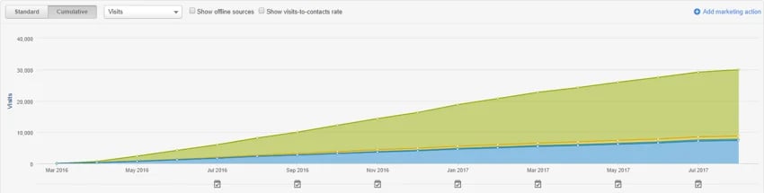 - From 3/16 - 7/17 cumulative increase of 4,000 - 21,000 visits and 16 contacts to 164 contacts