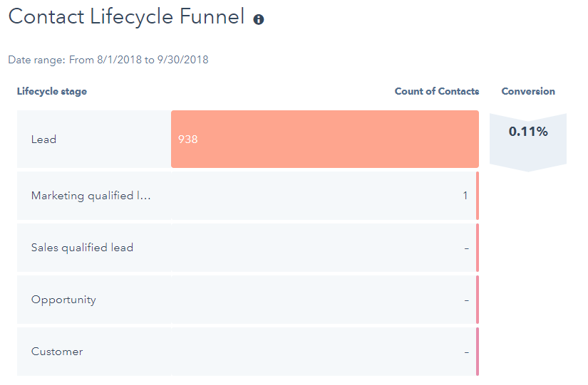 There was some hesitation when HubSpot was first implemented but the team adopted the system quickly when it came to logging sales activities and following a set sales cadence. In the last 8 months, we have seen how these changes have increased visibility into conversion rates. (click image to expand)