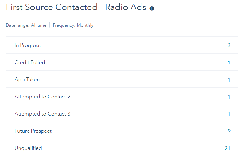 To further streamline, we implemented and integrated both AirCall and CallRail with HubSpot to assist with attribution and segmentation. By porting the loan officers’ numbers, we were able to track original call sources, in addition to establishing tracking numbers for organic search, radio, and TV ads. Added benefits of AirCall included call transfers, queues, and recording notes associated with calls – all which met the needs of their CSR team.