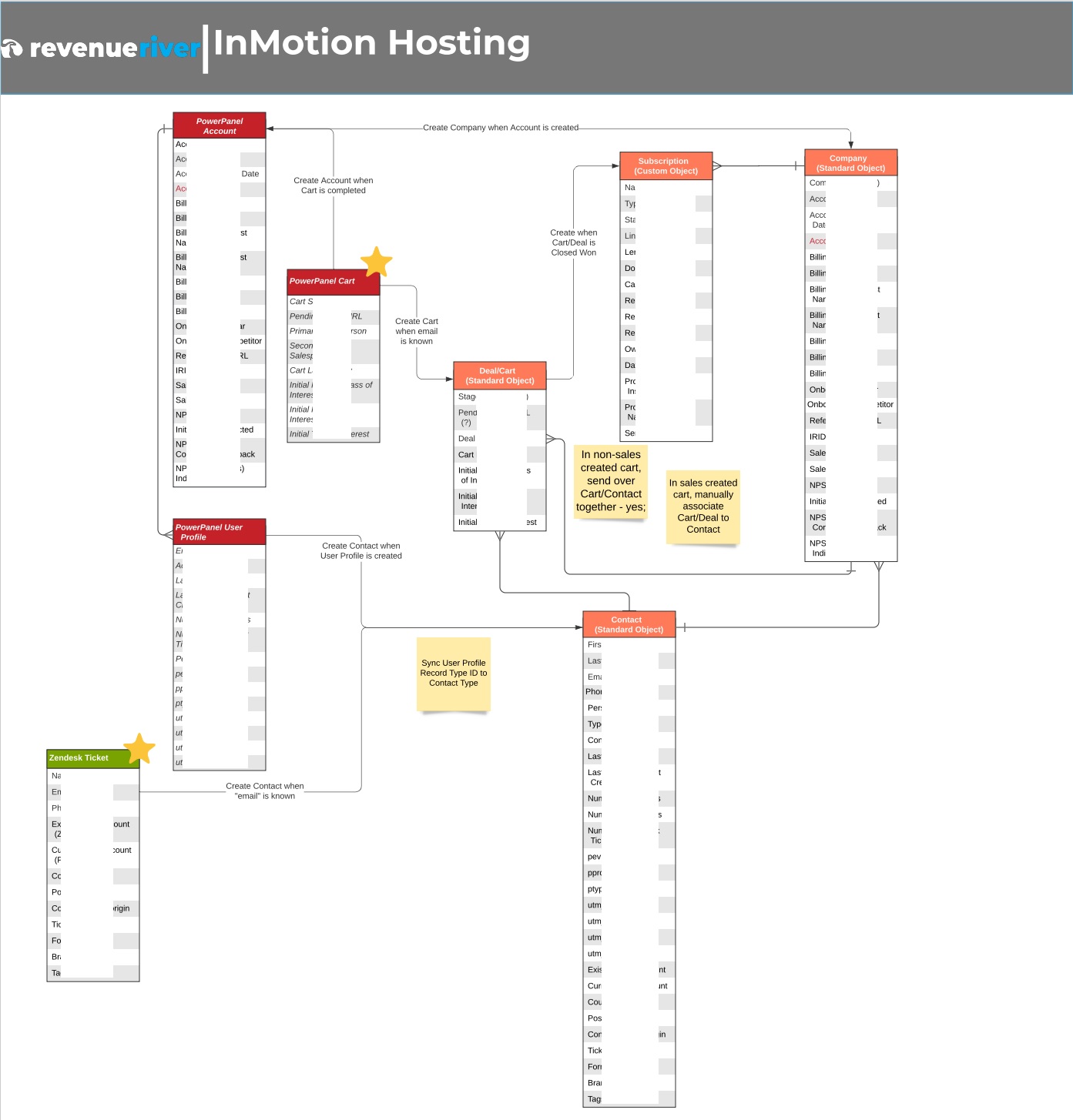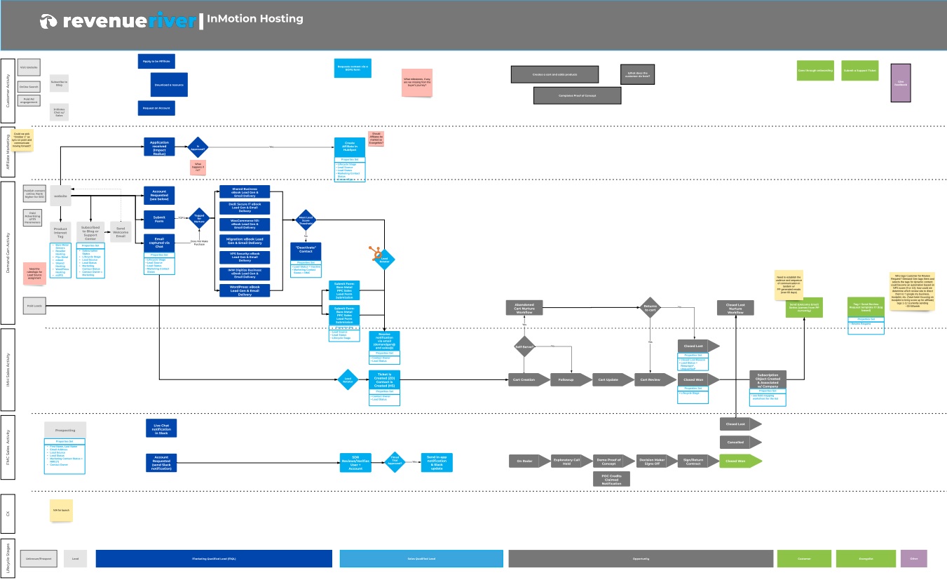 We created a data schematic to show how triggers across their various platforms, including HubSpot, PowerPanel, and ZenDesk would update relevant information to enable the customer journey and create operational efficiencies for the InMotion team.